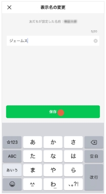 4.名前を入力後[保存]をタップすると、名前の変更が完了します。